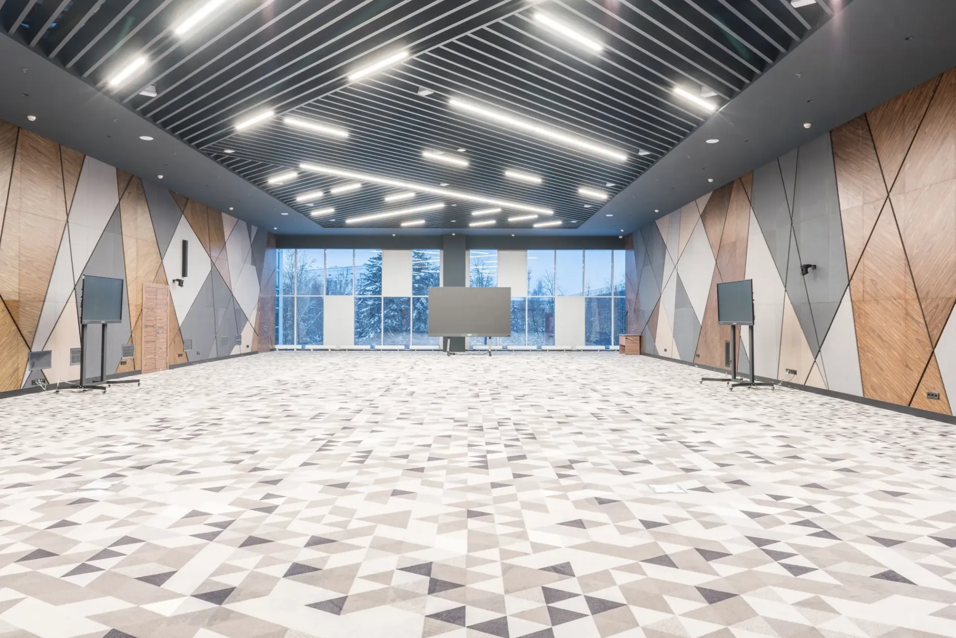 Галерея – пространство с витражным остеклением, соединяющее все ключевые функциональные зоны комплекса. Объединяющая зону гостиницы, спортивного комплекса, спа и бассейна, конференц-залов и переговорных.